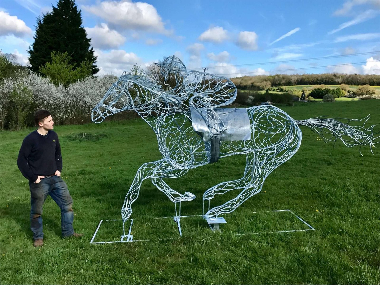 British sculptor Charles Elliott and his wife professional showjumper Abbe Elliott have worked together to further their NEW luxury equestrian sculpture range. Initially working on a simplistic horse sculpture, Charles has now pushed his skills and knowledge further to a NEW race horse sculpture as well as a NEW Polo Pony sculpture, both complete with tack and rider. Both pieces have a vast amount of detail and movement, this is created using a 8mm round material with a natural curving style. Handcrafted in their Buckinghamshire studio using traditional blacksmithing and modern metal manipulating techniques.